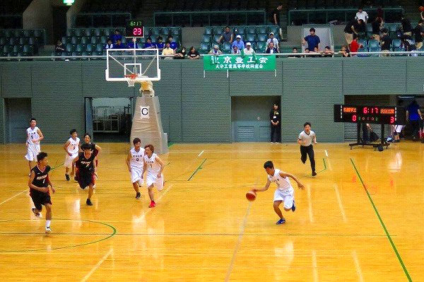 | 大分県代表 母校定時制男子バスケットボール観戦記 会長 岐部寿則 39R 8月1日 駒沢体育館で行われた、全国高等学校定時制体育大会男子バスケットボール競技に大分県代表として大工から出場とのことで、利光顧問・安藤副会長・山村副会長・竹中副幹事長・36TM佐藤さん・37TM 秦さんと応援に行きました。大変暑い日でこれは選手は大変と想像しましたが、体育館内は空調が効き観戦するには快適でした。 現地で引率のコーチ・片岡深志、部長・伊東龍哉両先生に挨拶して選手のコンディションを聞いた所、6人の選手の内いちばん上手いキャプテンが一週間前自転車で転倒し、顔や腕に大ケガをして、試合出場は無理との事、試合は5人制ですのでケガや反則で一人でも欠けると4対5になってしまいます。対戦相手の北海道・札幌琴似工業は10人ほどの大所帯です。 これは苦しい戦いと想像していたのですが、試合が始まると大工が2点の先取。しかし相手もすぐに2点、大工負けずに1点2点1点と追加して、第一クオータでは6対15の大健闘。第二クオータでは8対30、第三クオータ開始直後一人の選手が反則5回を取られ退場、4人対5人です。 一度退場した選手は再出場出来ませんが、控えの選手がいれば5人対5人の対戦が可能です。しかし、それもままならず4人対5人では次々と点差が開きます。それでも第三クオータでは終了時15対39と粘り、勝負の第四クオータです。応援団も熱が入ります。「20点にはしたいな」と期待して小旗を振り応援したところ、終了間際3点を入れ合計22対70で試合終了。結果は完敗ですが、相手5人に対しては大健闘です。相手は出場選手が途中交代して休めるのに、我が方は4人休むことなくコート内を走り続けました。後で聞くと柔道やサッカーの部員とのこと、良くやったと感激です。 会員の皆様、若かりし頃を思い出すスポーツ観戦も楽しいですよ、その後の乾杯も! |